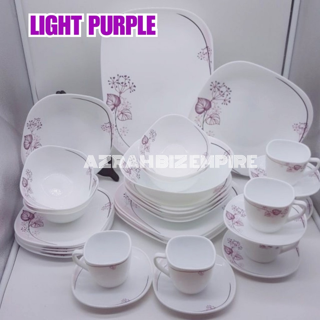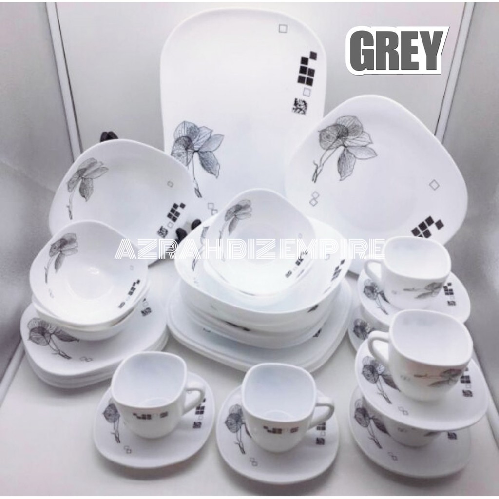 Hot 38pcs Square Opal Dinner Set Florea Set Pinggan Makan Set Cawan Kaca Opal Serving Dish Shopee Malaysia